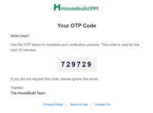 To ensure robust security and streamline the authentication process, Housebuild PM employs a One-Time Password (OTP) system. This OTP is dispatched to the registered email address for verification, thereby obviating the necessity for traditional, complex passwords and enhancing user data security.