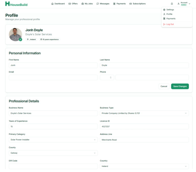 Beyond the core features discussed above, Housebuild PM offers several additional capabilities that enhance your ability to manage projects effectively. The Offers tab allows you to review and respond to contract offers from clients, providing a centralized location for business development. The Subscriptions tab enables you to manage your plan details and upgrade as your business grows. The Settings and Profile sections allow you to maintain your professional information, ensuring your profile remains current and accurate.